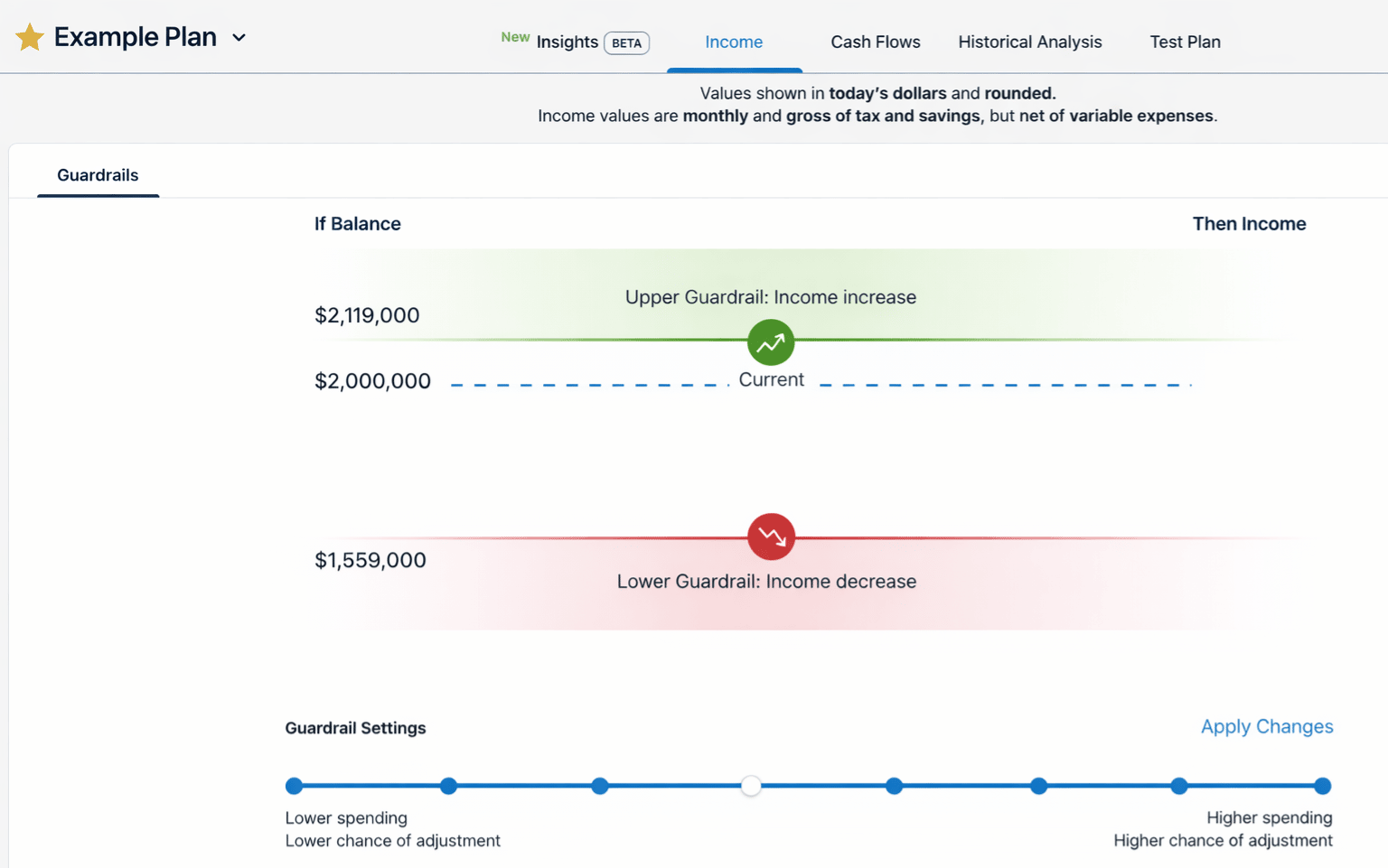 Looking at historical scenarios can give you a sense of what spending adjustments under a guardrails strategy might look like. And having that context ahead of time might change how you experience a downturn. For clients who want more protection against downside risk, we can tighten the guardrails by raising the threshold for upward adjustments and building in more cushion. Some clients even choose to skip income increases in the early years to create a larger buffer against future cuts. The goal isn't to predict the future. It's to make sure you've already thought through the response before you need it. What This Means for Your PlanWhen we build a retirement income plan using guardrails, here's what you get: